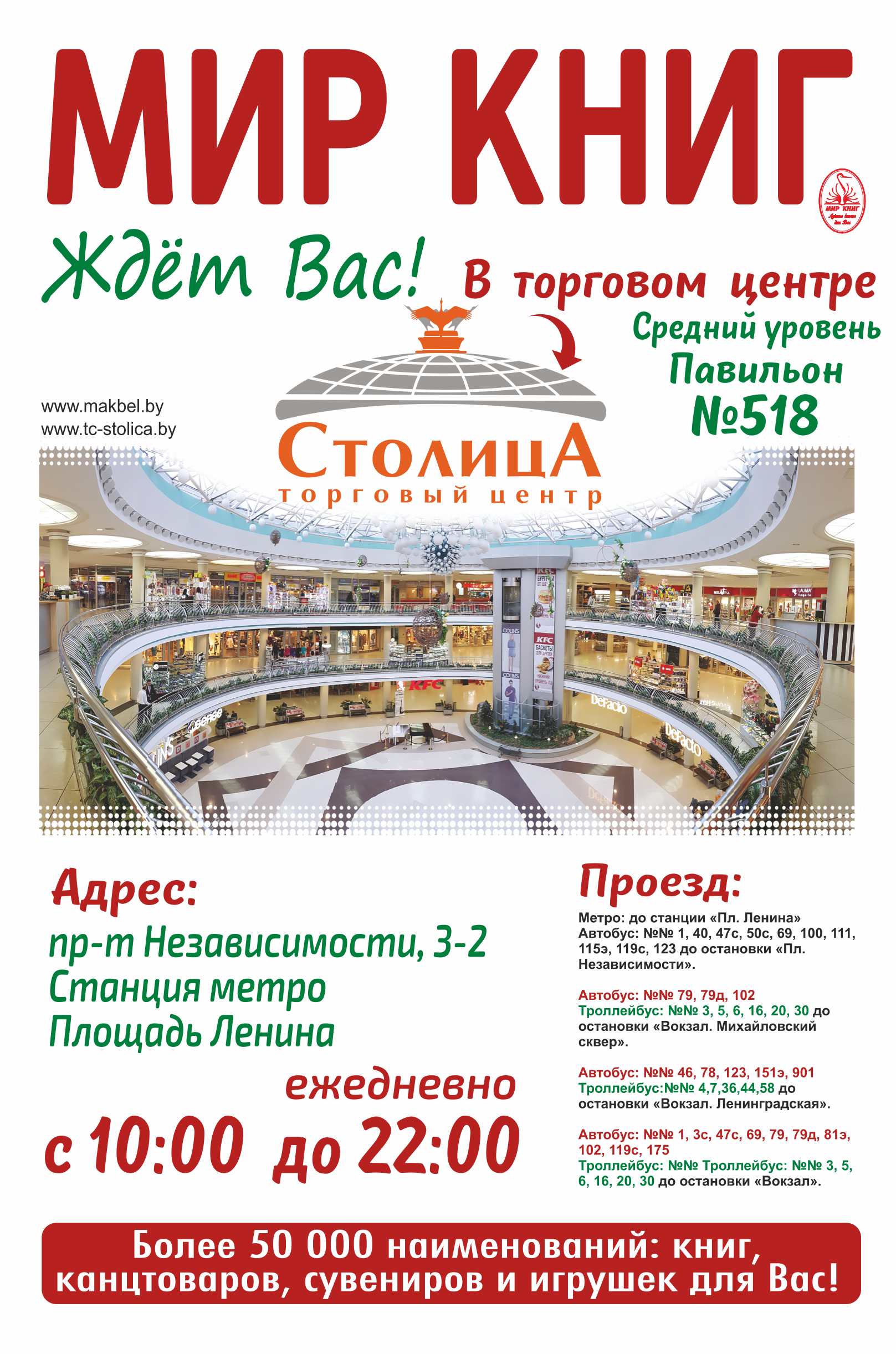 С 2000 года ПК ООО =Макбел= организатор специализированной ярмарки =Мир книг=. Ярмарка проводится по адресу: город Минск, торговый центр =Столица=, павильон №518. Ежедневно с 10:00 до 22:00. Адрес: пр-т Независимости, 3-2, станция метро =Площадь Ленина=.